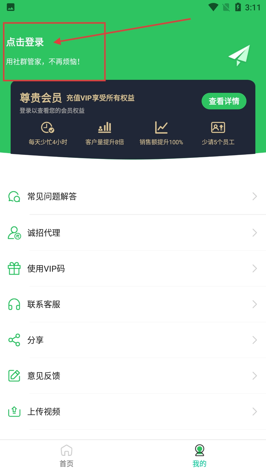 在个人中心页面,点击【点击登录】的区域,就能进入登录选择页面。