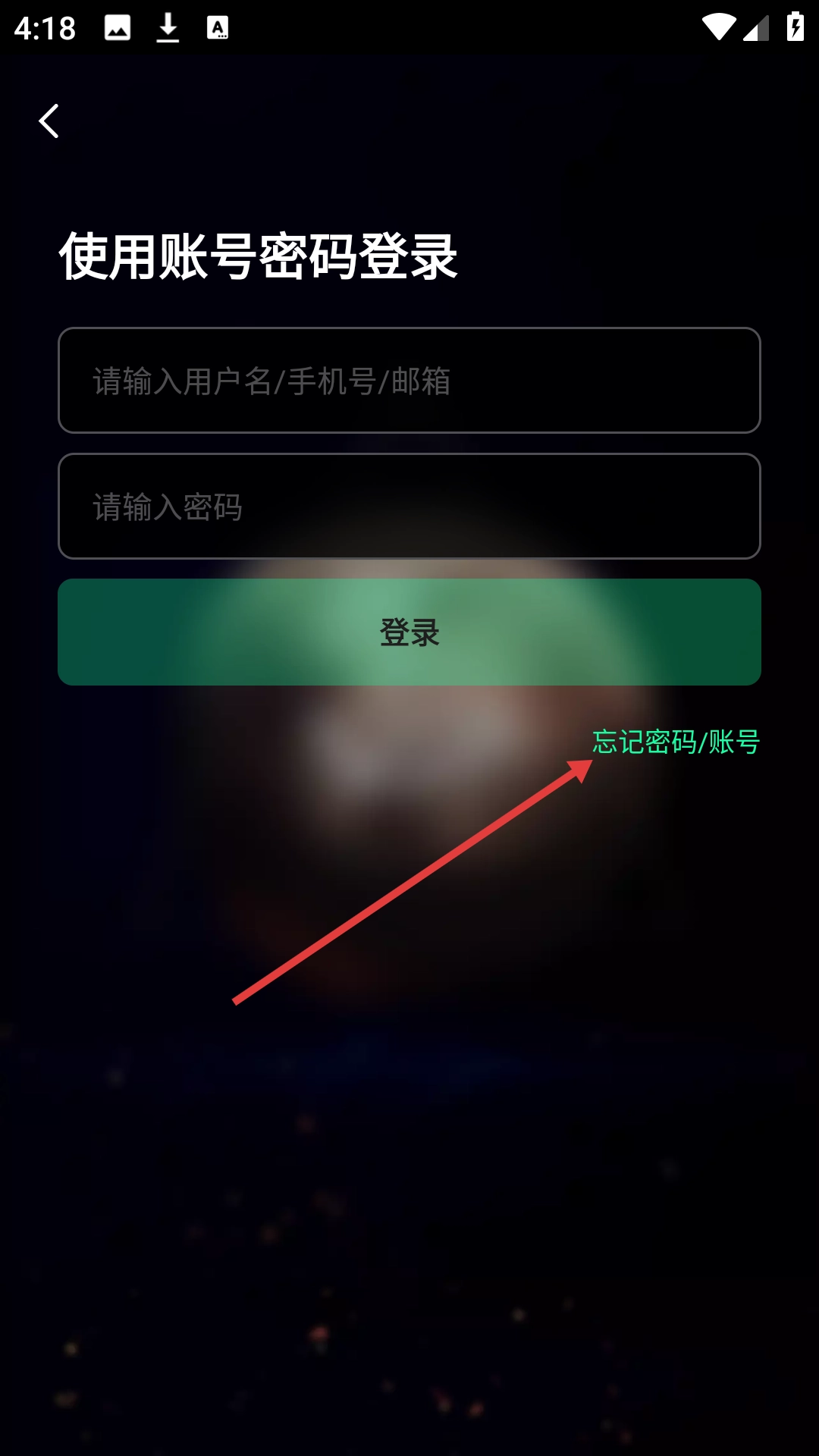 在账号密码登录页面,点击“忘记密码/账号”选项,即可进入忘记密码页面。