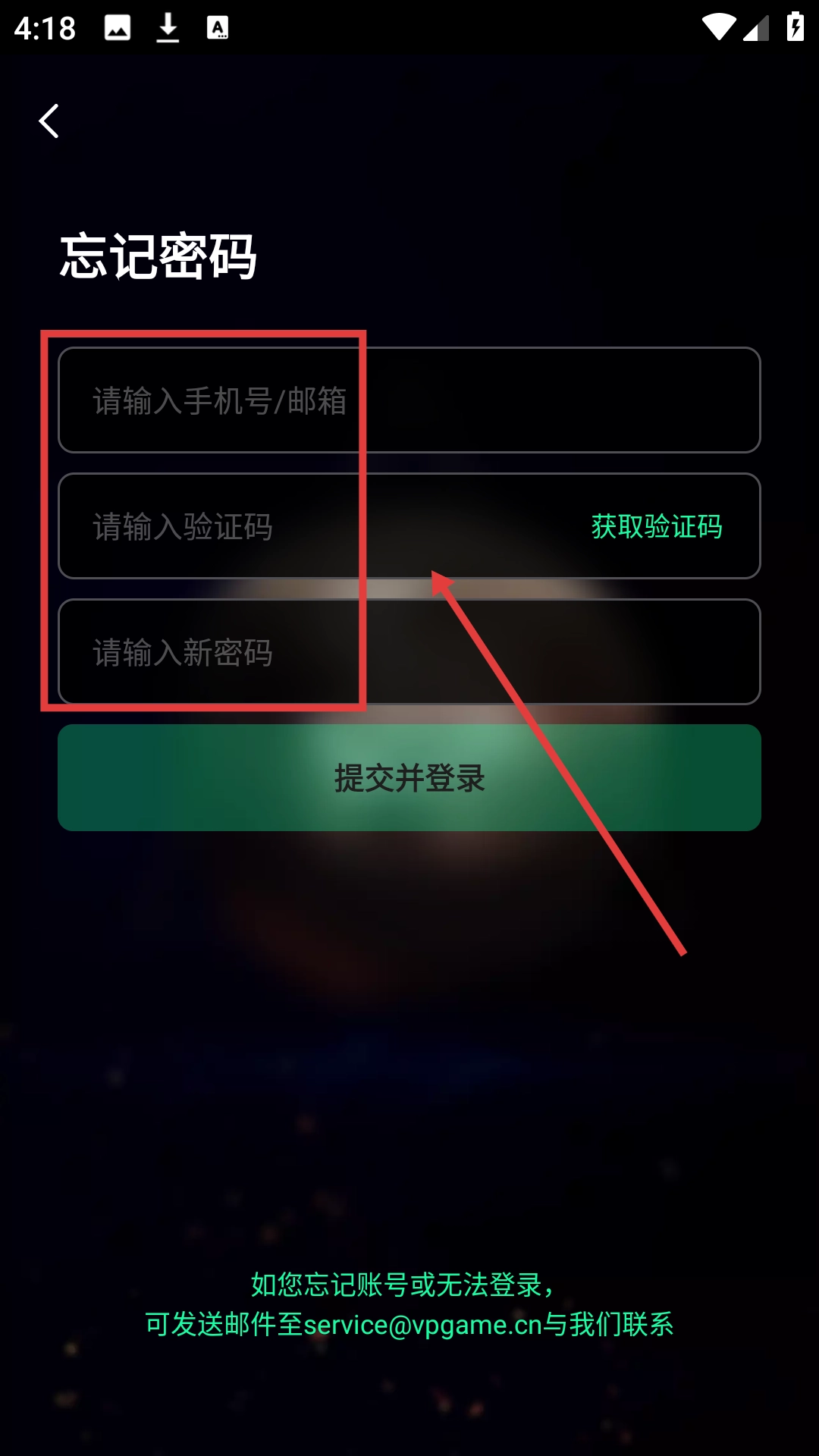 输入完成后,点击【提交并登录】按钮,即可完成密码重置并同步登录账号。