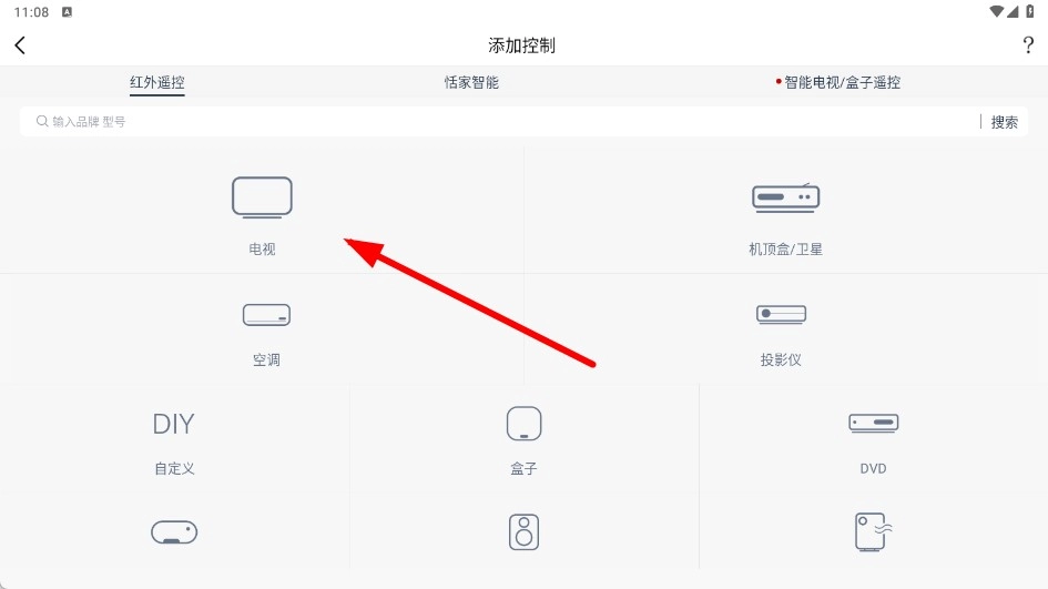 在添加控制页面,点击【电视-设备图标】,进入电视品牌选择页。