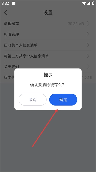 在设置页面中找到并点击【清理缓存】选项,此时会弹出清理缓存的提示框。