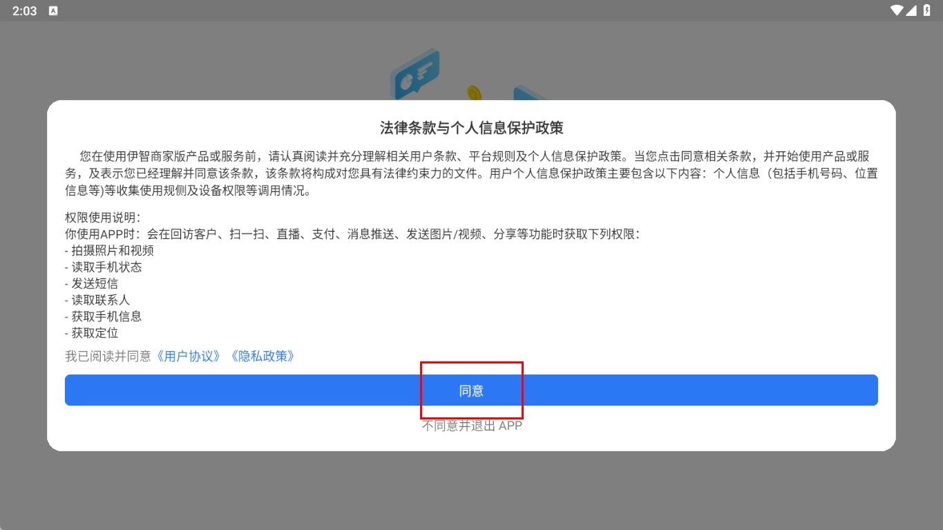 点击【同意-功能按钮】,以同意相关法律条款和个人信息保护政策。