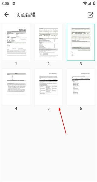 进入页面编辑界面后,能看到文档的多个页面缩略图,点击要编辑的页面,就可以开展页面相关操作。