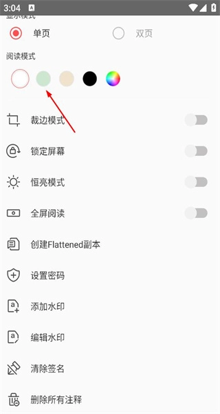 在文档阅读界面点击右下角的设置按钮,进入设置页面后,就能看到阅读模式、裁边模式等多种功能选项。