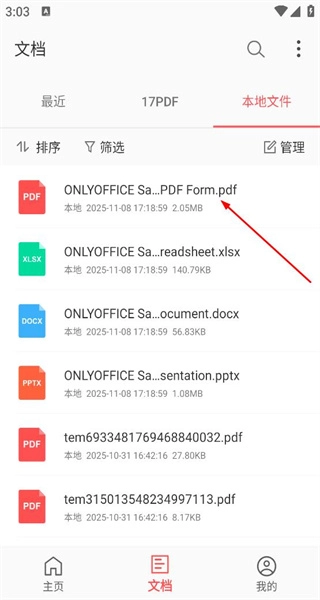 打开软件后,进入文档板块,点击本地文件中的PDF文件,进入文档阅读界面,即可查看文档内容。