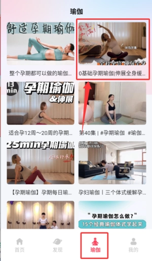 选择底部瑜伽栏目,挑选适合初学者的孕期课程。