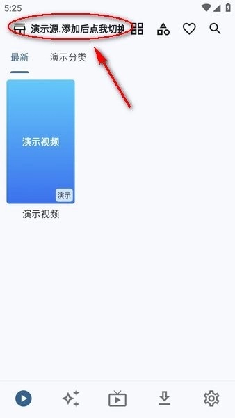 添加成功后,返回首页并点击“演示源.添加后点我切换”。