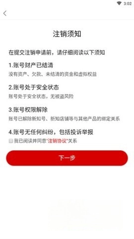 仔细阅读注销须知,勾选同意后提交申请;