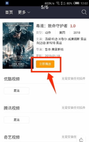 找到“毒液:致命守护者”这类影片后,点击“立即播放”按钮就能开始观看了。