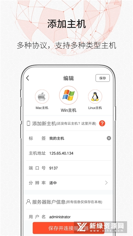 接口简单易用,功能完备全面,无论是专业人士还是非专业人士都能感到满意;同时支持RDP、SSH、VNC等多种协议,可连接Windows、Linux、Mac等不同类型的主机。