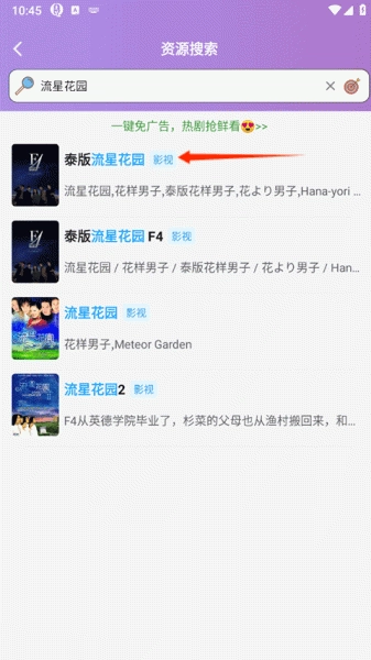 打开应用后,在顶部的搜索栏中输入想要查找的剧集名称,随后进入搜索结果页面。