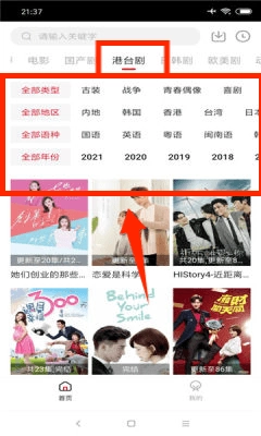进入应用的推荐页面后,找到港台剧分类栏目并点击进入对应的内容专区。