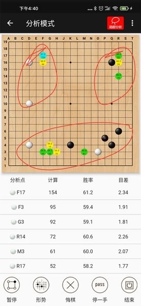 棋谱分享与分析:隐智围棋棋谱能够分享至微信、QQ等平台,可分享的内容包括棋谱盘面截图、棋谱链接以及SGF格式文件。此外,它还支持打开SGF格式的棋谱文件,能够对第三方平台导出的标准SGF格式棋谱进行分析。