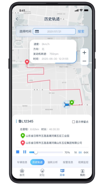 每一辆环卫车都能单独调出查看,车辆的各项信息均可查阅,包括当日行驶路线、油耗数据等都会直接呈现。