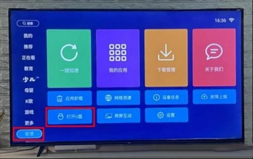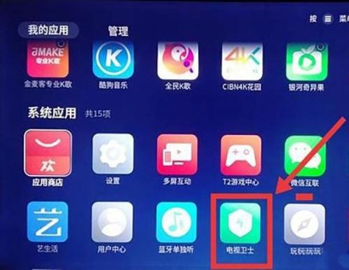 (使用电视卫士安装)先在电脑上准备好所需的软件(apk安装包),将其移动到U盘中,再把U盘插入电视机,然后在电视的【我的应用】里找到【电视卫士】并点击打开。