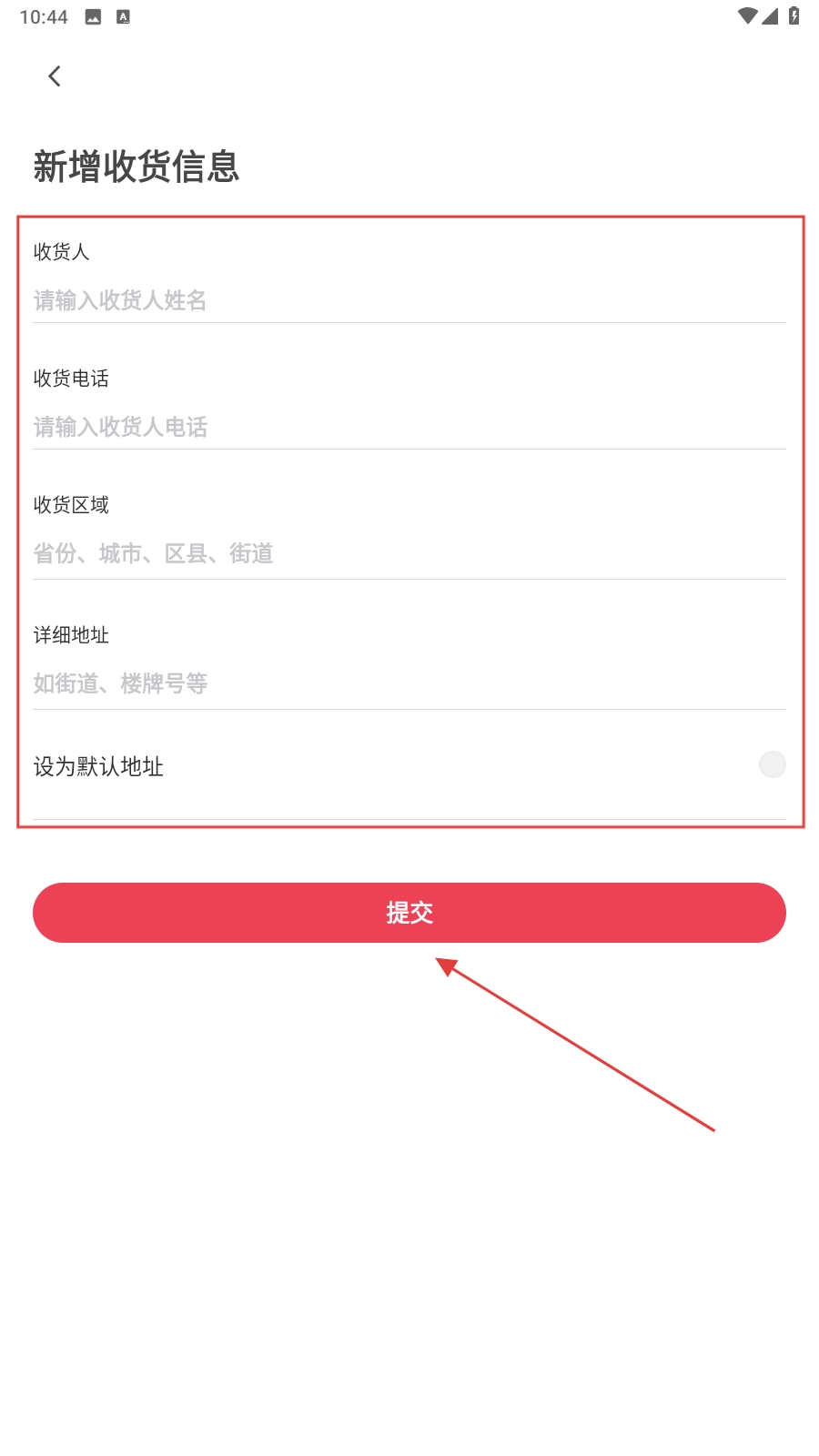 在【新增收货信息】页,填写收货人、电话等信息。