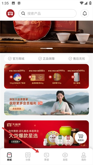 点击底部“茶语”选项,进入茶语广场页面。
