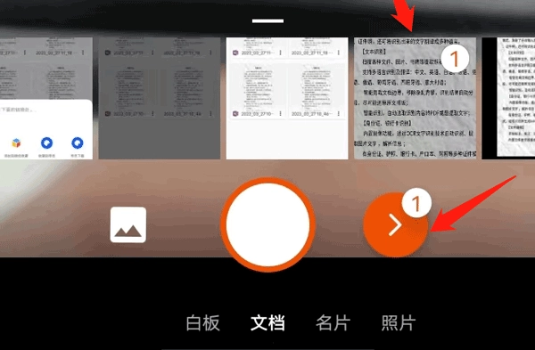 在这个页面完成软件安装后,打开该应用,找到底部的“文档”选项并点击;接着,你可以直接拍摄需要转为PDF的文件,也能从相册里选择已拍好的文档图片(支持多选),选好后点击快门键旁边的图标即可。