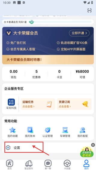 你可以先打开货运服务类应用,然后点击底部的“我的”选项,这样就能进入到个人中心页面了。