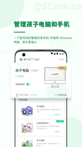 青松守护家长端是一款功能多样的工具类应用,其主要目的是协助家长不受时间和地点限制地管理孩子使用的电脑、手机与平板设备,从而保障孩子在上网过程中能保持健康且合理的使用状态。