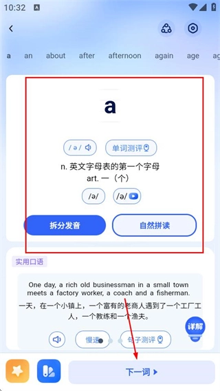 学习完当前单词后,点击“下一词”按钮,就能继续学习下一个单词。