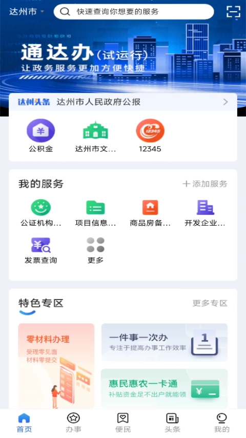 通达办是达州市政务服务管理局精心打造的综合性城市服务平台,它整合政府政策、应用接口与数据资源,为市民提供一站式政务服务。借助大数据技术,该平台联合多部门及平台企业,集中优化政务服务流程,既提升政府治理效率、改善营商环境,又切实解决市民办事时遇到的各类问题。平台推行的零材料政策与“一件事一次办”服务模式,体现了其在提升办事便捷性上的决心与能力,真正践行了高效、便民的服务理念。