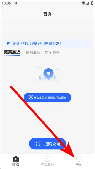 打开蔚动力充电应用,点击底部导航栏中的“我的”选项,即可进入个人中心页面。