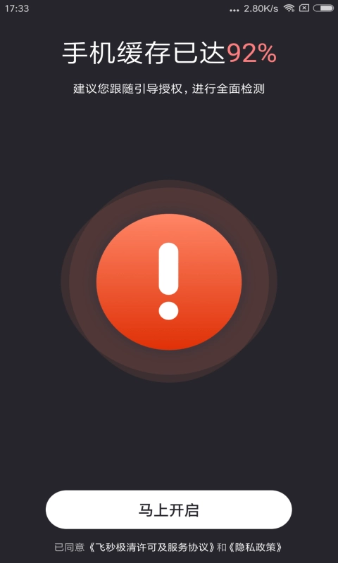 采用超级清洁主深度清洁的方式,深层清扫,清除手机垃圾,像飞一样启动。