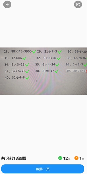 只需等待系统数秒,就能快速高效地批改孩子的口算作业,并且支持再次批改。