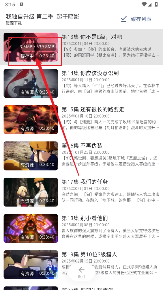 如图所示,点击后就能查看当前的进度情况,等进度完成,就可以进行离线观看了。