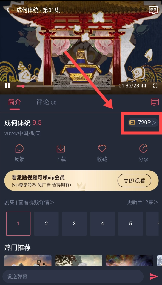 这里以“成何体统”为例,用户需先进入播放界面,再点击图中所示的720p选项。