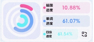 四、切换单词学习进度显示类型点击进度页面右上方的切换按钮,即可更换“中学"、“四级”、“六级考研"单词学习进度的显示类型