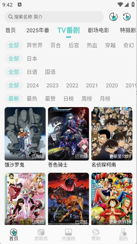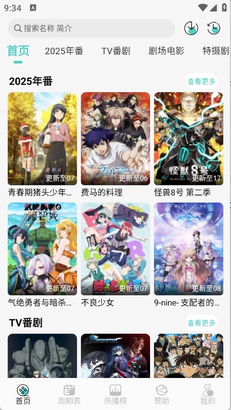 首页为用户推荐了很多的很多类型的动漫。