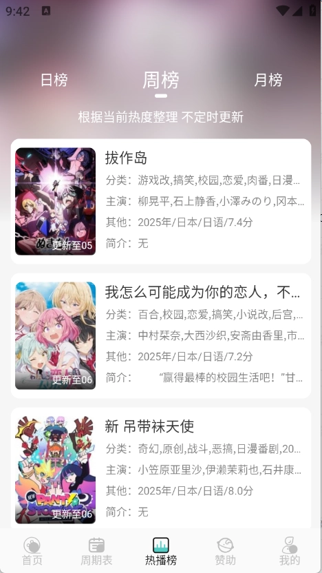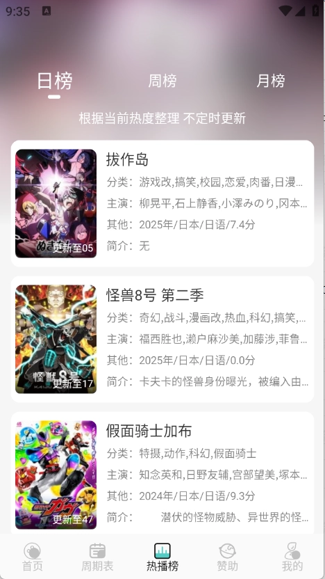 热搜榜单设有日榜、周榜和月榜,方便用户随时了解当下热门的动漫作品。