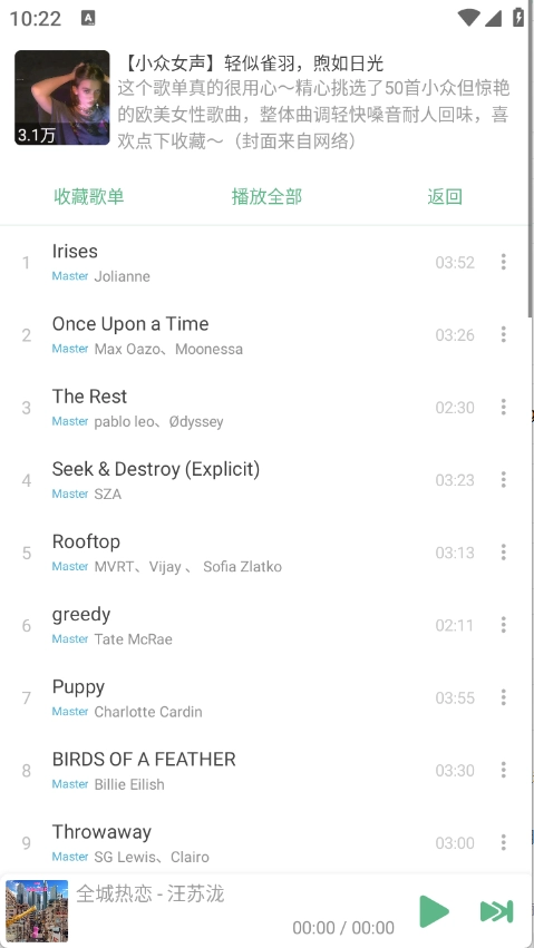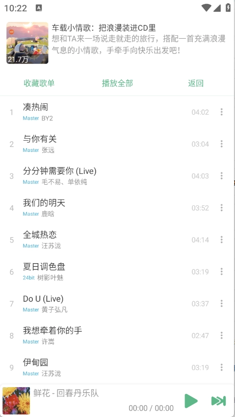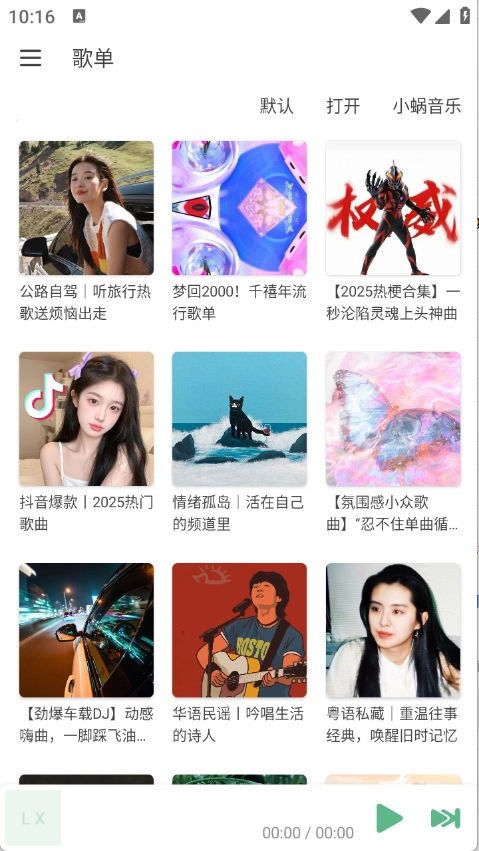 进入歌单页面后,能看到丰富的音乐资源,经典老歌与流行音乐等各类曲目都包含在内。