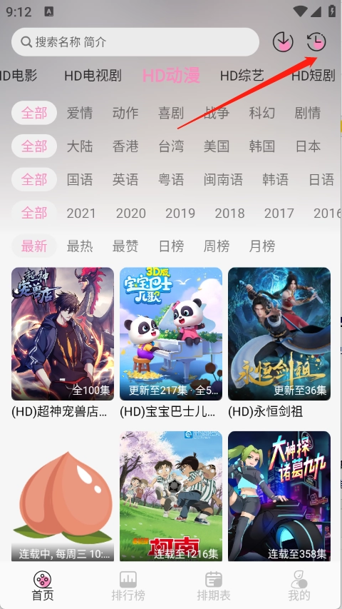 进入首页,点击右上角的历史。