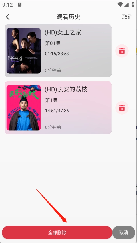 选择要删除的影视即可。