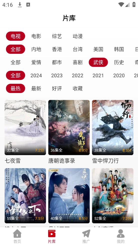首页和片库栏目为用户提供了海量影视资源,涵盖国内外优质电视剧、电影及综艺等内容。