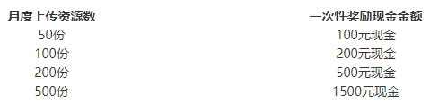每成功上传并通过审核一份资料,可获得1元现金奖励。另外,资源还会根据被使用的情况给予现金提成,具体标准如下: