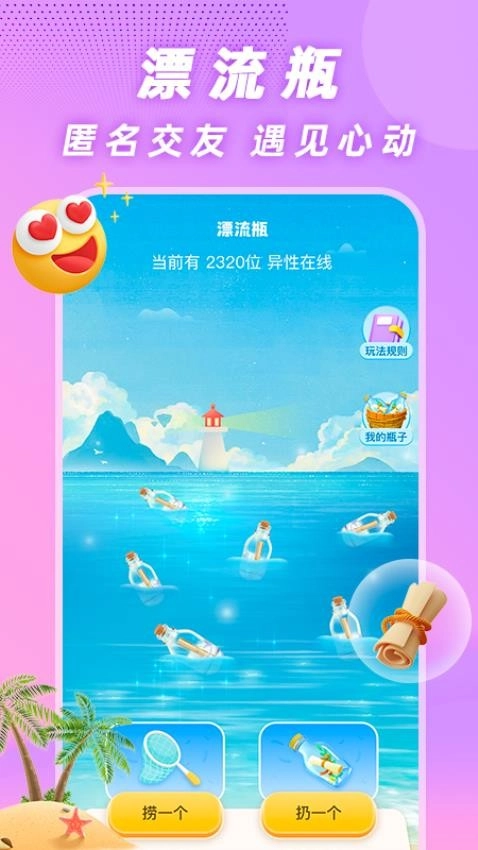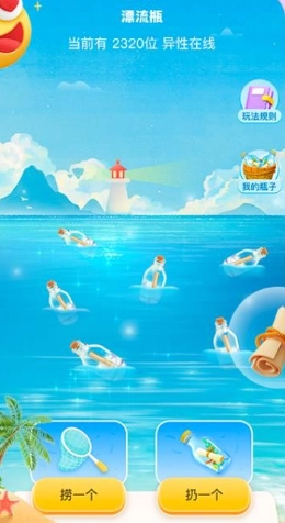 平台里面还有线上的漂流瓶,你可以在线进行匿名交友