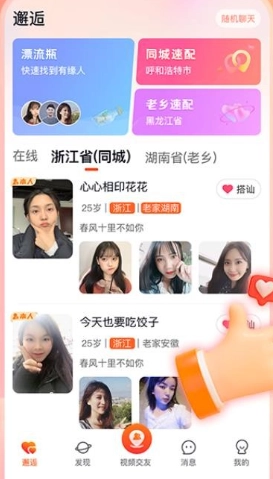 饭友(改名友趣)饭友(改名友趣),友趣(原饭友)是一款专注于线上语音、视频聊天互动的交友软件,能让用户轻松开启聊天互动,实时获得贴心陪伴,还能主动搭讪感兴趣的对象,邂逅同频好友,从而拓展社交圈,在生活中收获温暖陪伴,告别孤单时刻;平台会依据用户喜好精准匹配心动有缘人,助力用户高效结识更多朋友,开启趣味交友之旅;另外,友趣免费版提供特惠视频聊天服务,用户可享受特价互动、快速接通的优质陪聊体验,感兴趣的话就快来本站体验吧!