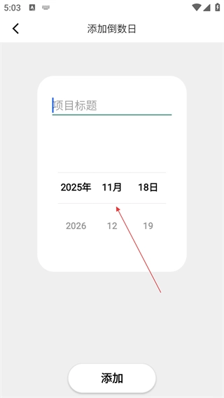 在【添加倒数日】页面,填写项目标题并选择日期,完成信息设置。