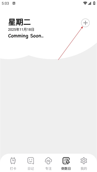 在倒数日页面,点击右上角的【+】按钮,即可开启添加新倒数日的操作流程。