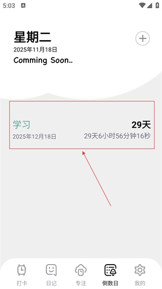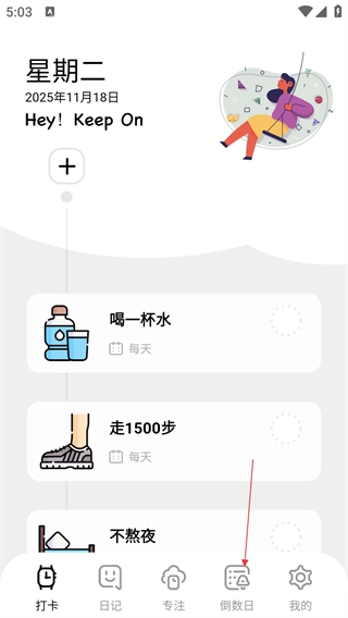 在主界面点击底部的【倒数日】选项,即可进入倒数日功能页面。