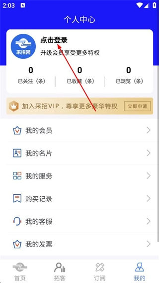 在个人中心页面,点击登录按钮,进入登录选择页面。