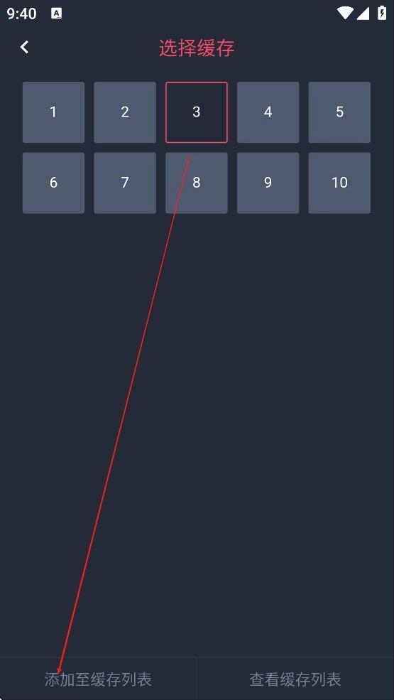 选择想要缓存的集数,然后点击添加至缓存列表