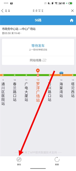 在详情页面,查看换向之后的56路公交信息。