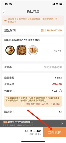 进入确认订单的界面,完成确认操作后,点击右下角的“立即支付”选项。