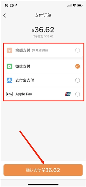 进入支付订单页面后,可依据自身需求勾选“余额支付”“微信支付”“支付宝支付”或“Apple Pay”等支付方式,完成选择后点击“确认支付”按钮即可完成操作。