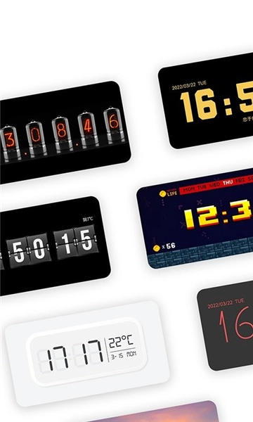 多种时钟样式与色彩可供挑选:用户能够从丰富的时钟样式和色彩中进行选择,按照个人喜好来定制专属的时钟外观。